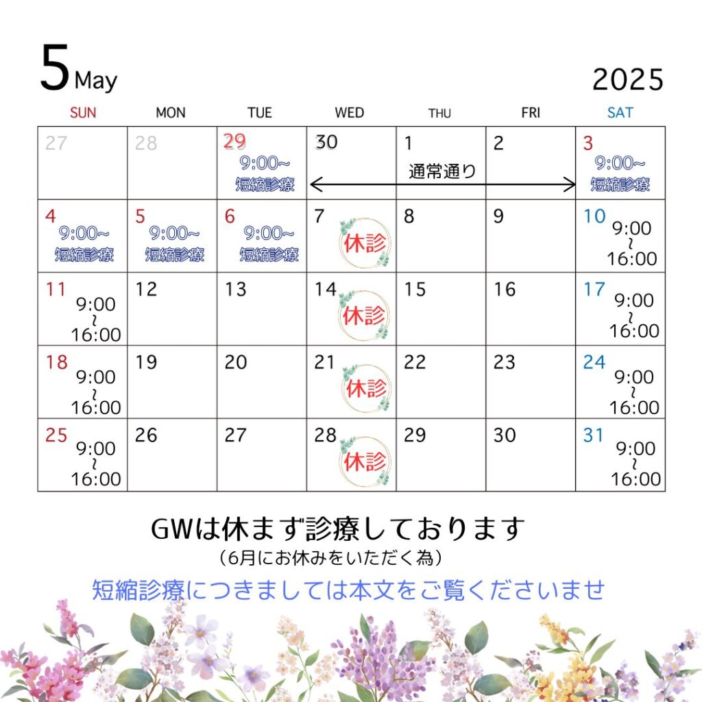 GW中のご予約はお早めにご連絡をいただけますとお取りしやすいかと思いますのでよろしくお願いいたします。